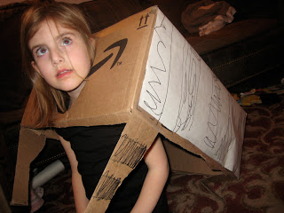 Always one to look up to her big sister, Amalia set to decorating her own box. We're not sure what her vision was.