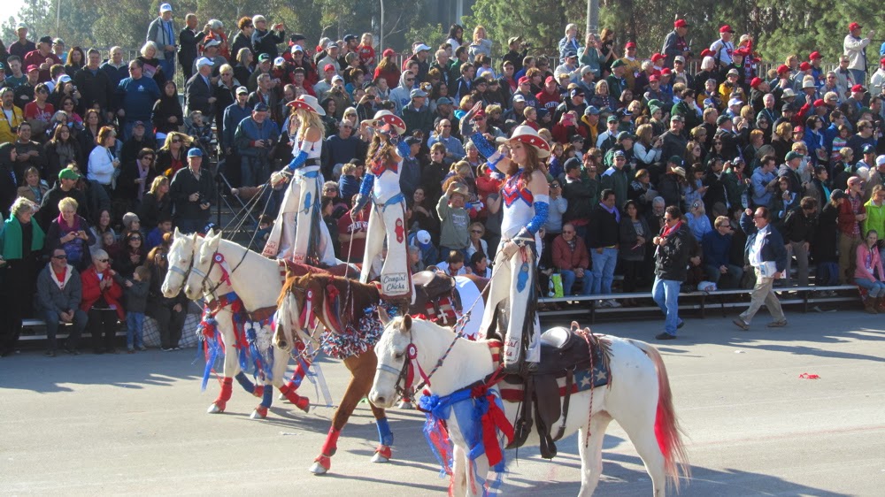 Amalia's favorite part of the parade: cowgirls standing on horses.